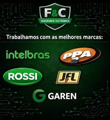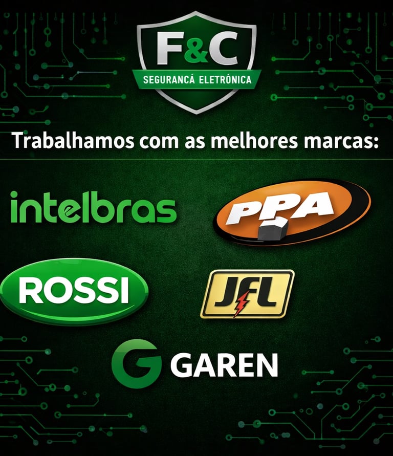 Trabalhamos com as melhores marcas do mercado: Intelbras, PPA, Rossi, JFL e Garen.